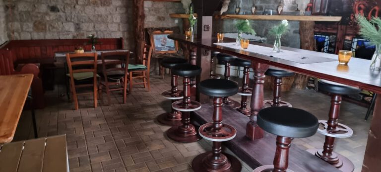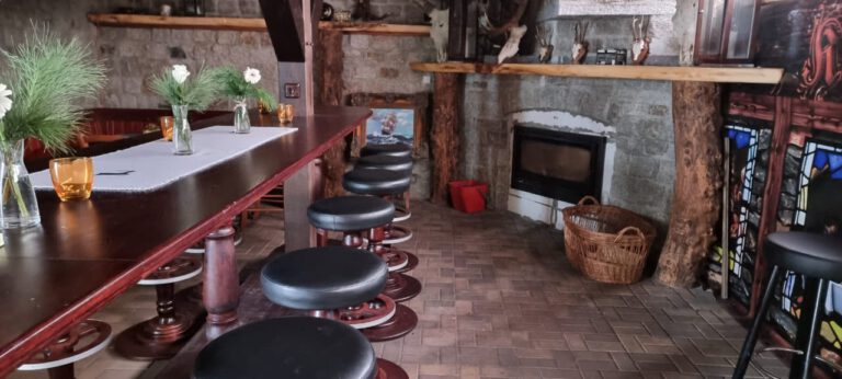 Unser Herrenraum wurde 2018 errichtet und ist ein separater Raum außerhalb des Gasthauses. Er befindet sich unmittelbar am Festzelt. Gemauert aus Granitsteinen und mit eindrucksvollen Dachbalken, bietet der Herrenraum eine besondere Umgebung. In der Mitte besticht ein gemütlicher Tresen und für angenehme Wärme sorgt ein Kamin.